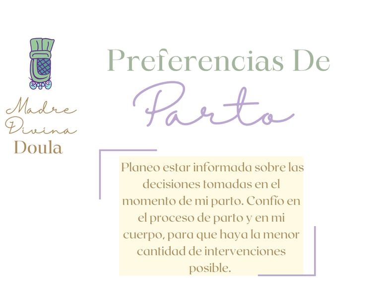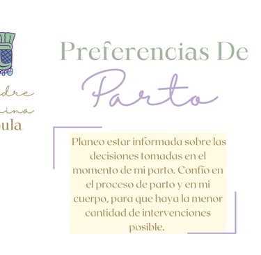 Esta visita prenatal es para hablar sobre sus preferencias relacionadas con el parto y la llegada del bebé. En el transcurso de esta visita, nos ocuparemos de delinear sus deseos para el parto, la llegada del bebé y los cuidados inmediatos después del nacimiento. Esto puede abarcar preferencias, como el ambiente (por ejemplo, dar a luz en casa o en la clínica), las opciones de alivio del dolor que estás considerando y quién deseas que esté contigo durante el parto. Hablaremos de varias alternativas para controlar el dolor que tienes a tu disposición durante el trabajo de parto, incluyendo técnicas naturales y medicamentos.