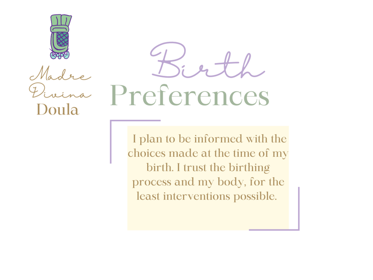 This prenatal visit is to discuss your preferences for labor and birthing. During this visit we will be outlining your desires for labor, delivery, and immediate post-birth care. This can include preferences such as the environment (e.g., home birth or hospital), the types of pain relief you are considering, and who you want present during the birth. We will discuss various pain management options available to you during labor, including medications and natural methods.